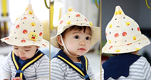 【SEBLES】ベビー 赤ちゃん 帽子 とんがり ハット 子ども 子供 日差し UV コットン 綿 ドット アヒル 鳥 可愛い あごゴム 春 夏 秋 ユニセックス 女の子 2-12ヶ月(イエロー)