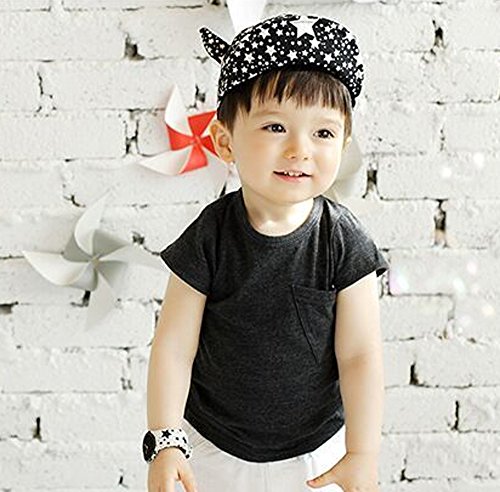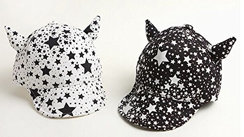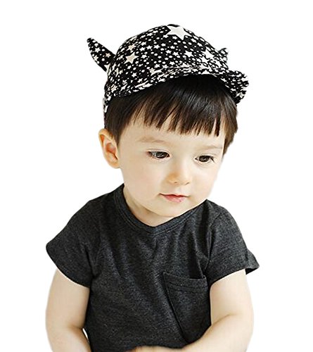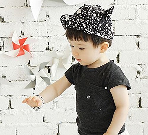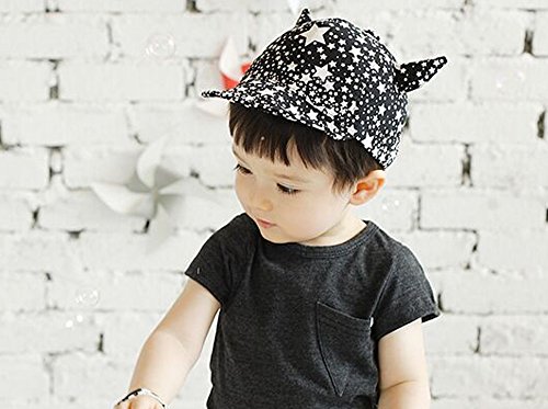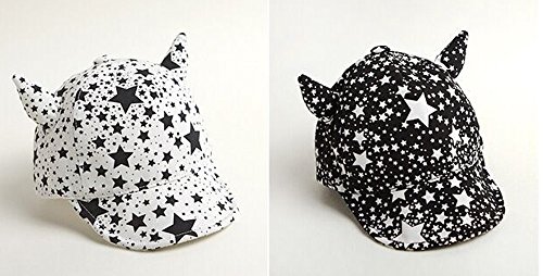 【SEBLES】ベビー 赤ちゃん 帽子 キャップ プリント カジュアル 角 ブラック ホワイト 黒 白 ユニセックス UVカット 紫外線カット お出かけ お洒落 6ヶ月-2歳(ブラック)