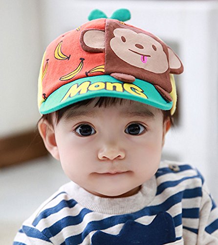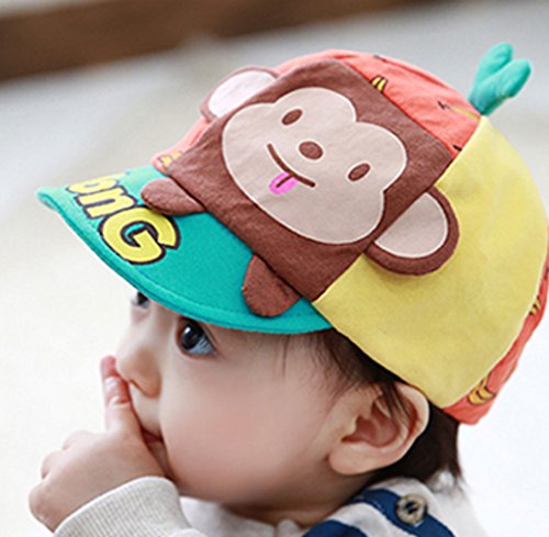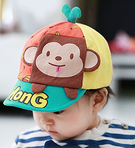 【SEBLES】ベビー 赤ちゃん 男の子 女の子 ユニセックス キャップ 帽子 コットン 綿 キャラクター 猿 モンキー カラフル 可愛い(タイプD)