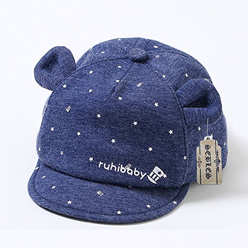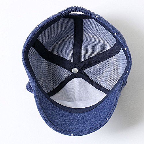 【SEBLES】ベビー 赤ちゃん 男の子 女の子 ユニセックス キャップ 耳付 デニム 星 スター 無地 プリント 可愛い 柔らか(XL)