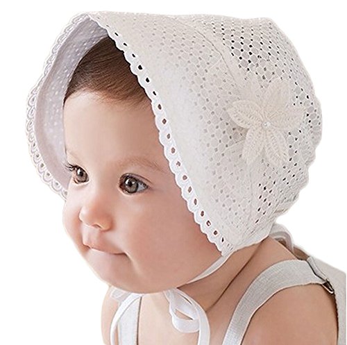 【SEBLES】ベビー 赤ちゃん 女の子 ユニセックス ベビー帽 帽子 レース エレガント 可愛い コットン 綿 リボン(ホワイト)
