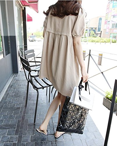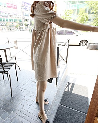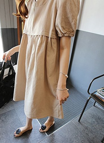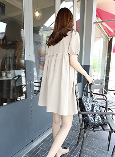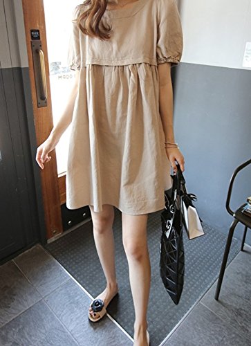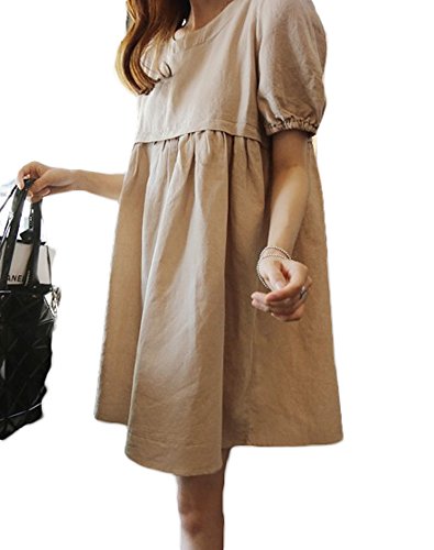 【SEBLES】マタニティ ファッション ワンピース カジュアル フレア スカート 無地 コットン 綿麻 ラウンドネック ハイウエスト ミニスカート 半袖 初夏 夏(カーキ,XL)