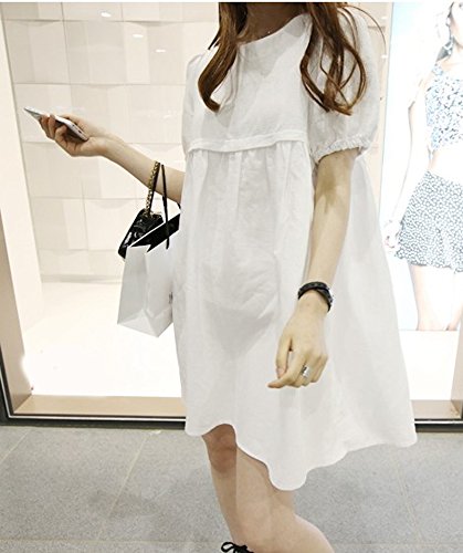 【SEBLES】マタニティ ファッション ワンピース カジュアル フレア スカート 無地 コットン 綿麻 ラウンドネック ハイウエスト ミニスカート 半袖 初夏 夏(ホワイト,XXXL)