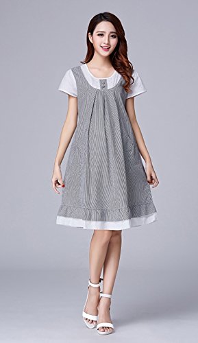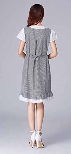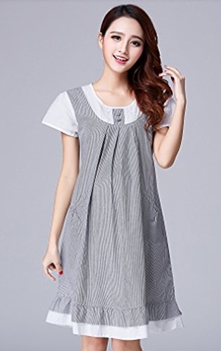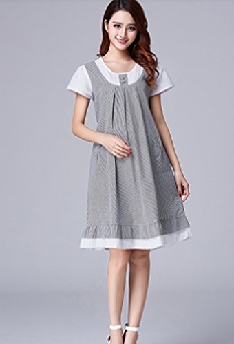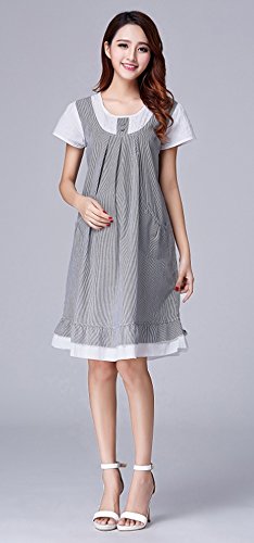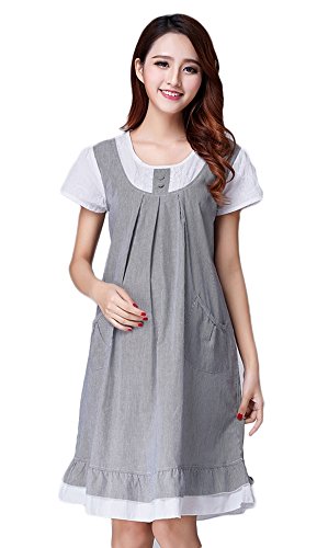 【SEBLES】マタニティ 妊婦 ファッション ワンピース カジュアル フレア スカート リボン 無地 コットン 綿 ラウンドネック ハイウエスト フレア スカート 半袖 春 初夏 夏(ブラック,M)