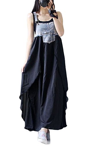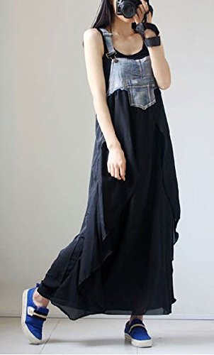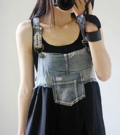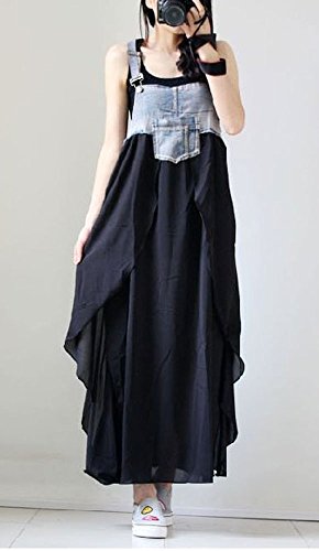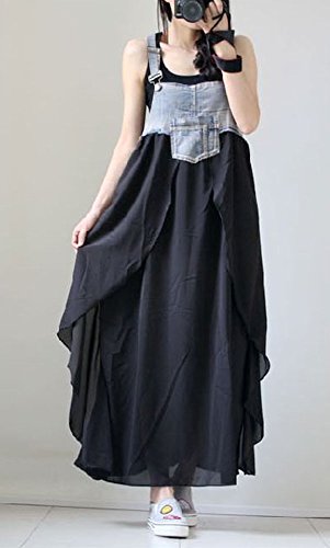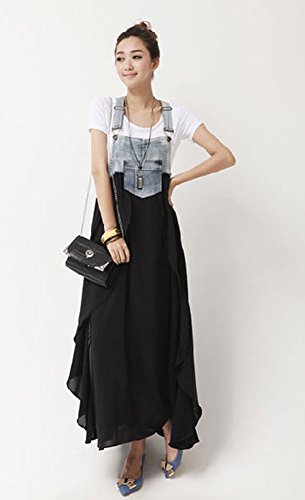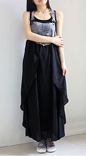 - オーバーオールデニムとシフォンスカートのコラボがとっても素敵です。