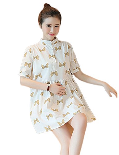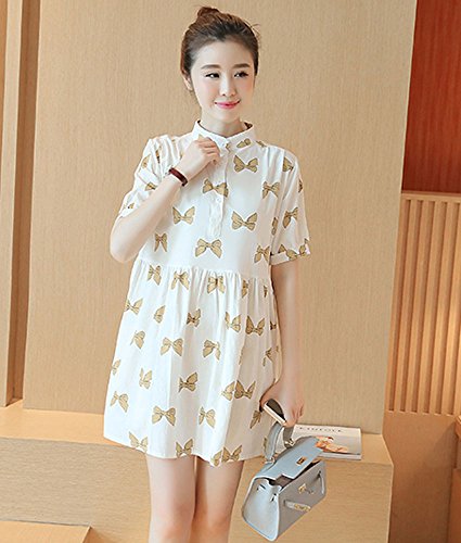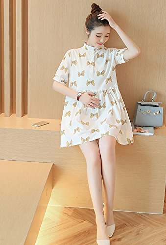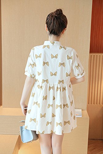 【SEBLES】マタニティ 妊婦 妊婦服 ファッション ワンピース ドレス 夏 初夏 半袖 コットン 綿 プリント ホワイト 白 Aライン スカート(タイプB,XXXL)