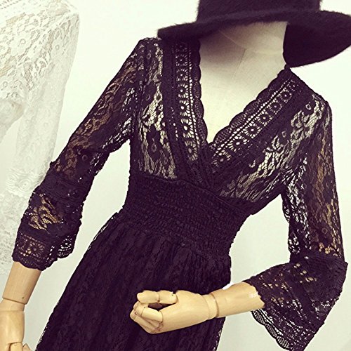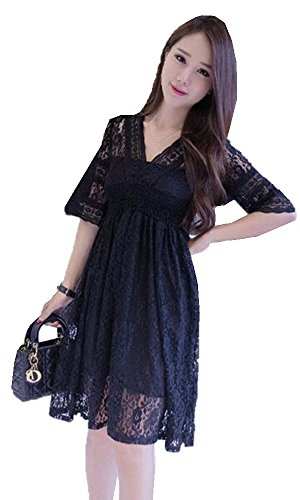 【SEBLES】レディース マタニティ Vネック レースワンピース ロング丈 ひざ丈 夏 ドレス ブラック(ひざ丈) XXL