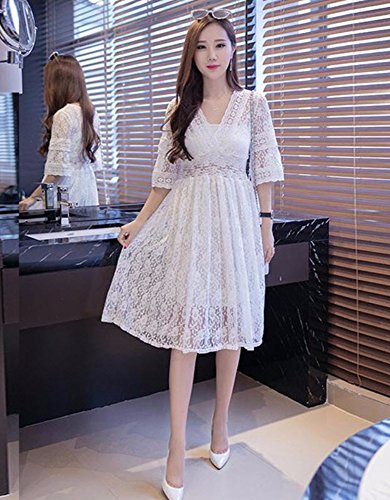 【SEBLES】レディース マタニティ Vネック レースワンピース ロング丈 ひざ丈 夏 ドレス