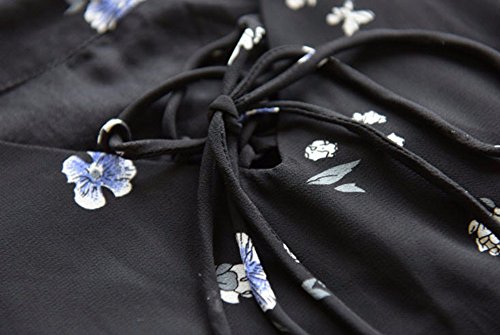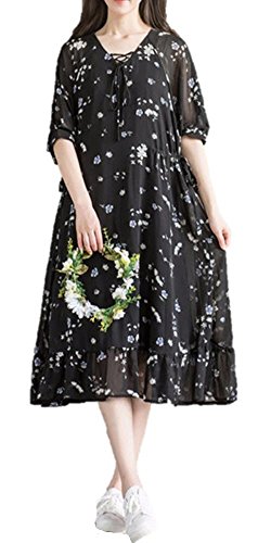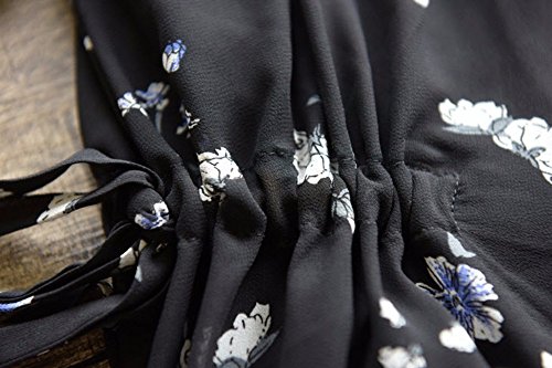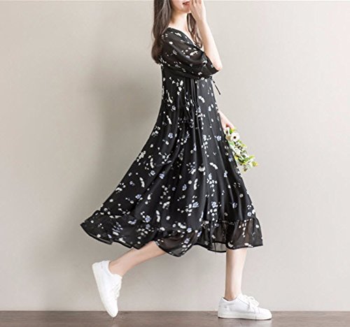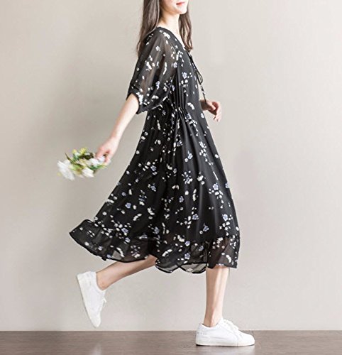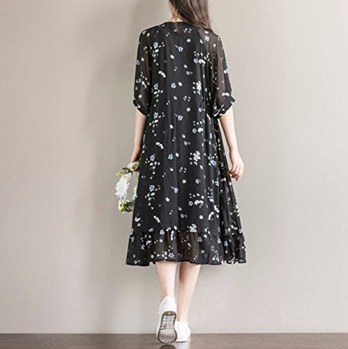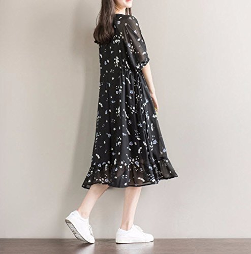 【SEBLES】レディース マタニティ ワンピース 半袖 シフォン ミディ丈 花柄 春 裾フリル ブラック XXL