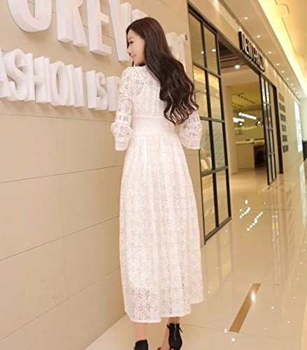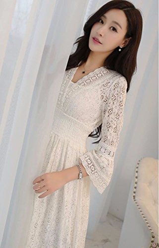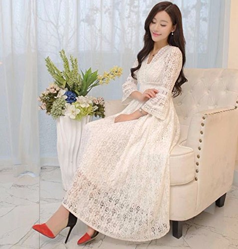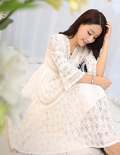 【SEBLES】レディース マタニティ Vネック レースワンピース ロング丈 ひざ丈 夏 ドレス ホワイト(ロング) L