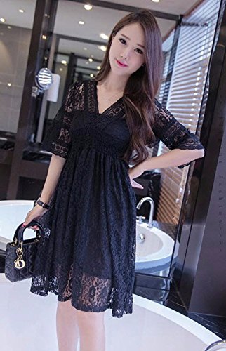 【SEBLES】レディース マタニティ Vネック レースワンピース ロング丈 ひざ丈 夏 ドレス