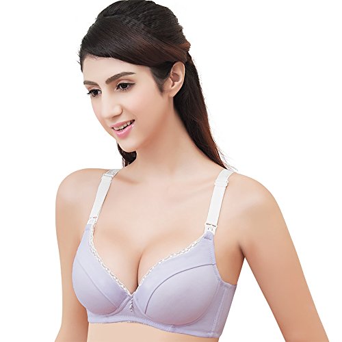 【SEBLES】マタニティ コットン 授乳 前開き バストアップ ブラジャー 4段 4列 ホック バイカラー 無地 全8種 プリント(ソフトパープル,95C)
