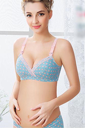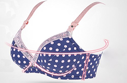 【SEBLES】マタニティ コットン 授乳 前開き ドット柄 バストアップ ブラジャー 寄せ上げ プリント 全3色(ブルー,95B)