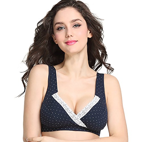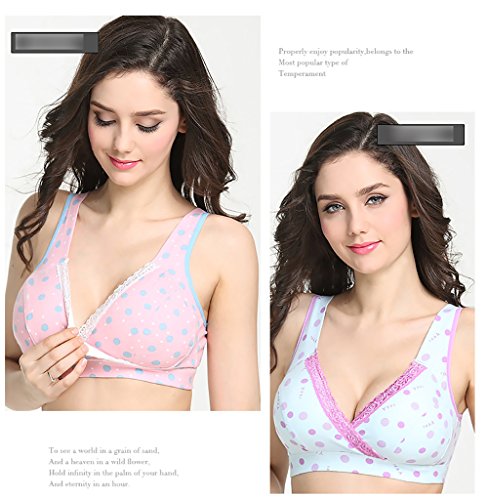 【SEBLES】マタニティ フロントクロス コットン 授乳 産前 産後 無地 プリント バストアップ ブラジャー 3列 3段 ホック 全10色(コーヒードット,XL)