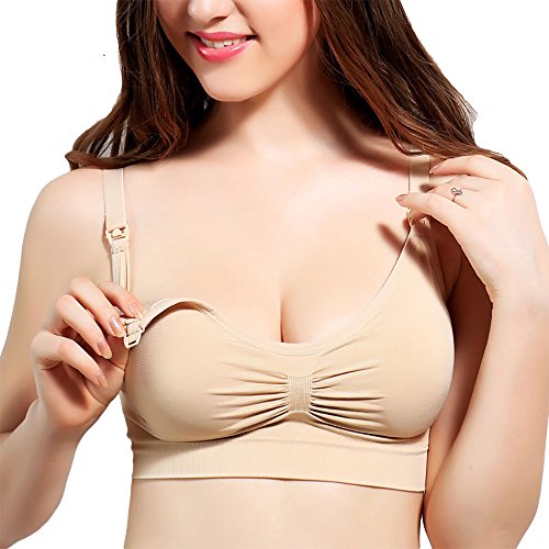 【SEBLES】マタニティ シームレス 楽々授乳 産前 産後 無地 脇肉 柔らか素材 シンプル ブラジャー 3列 3段 ホック 全3色 4サイズ(ピンク,M)