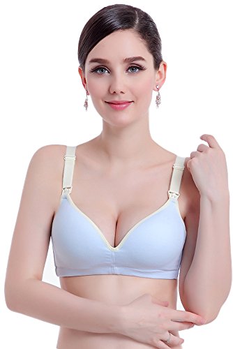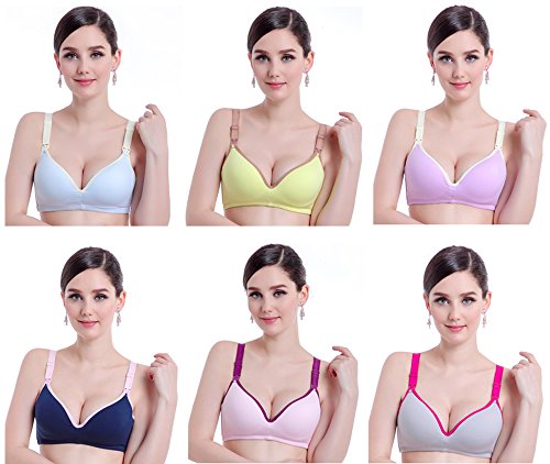 【SEBLES】マタニティ 産前 産後 授乳 コットン フロントバックル 3列3段ホック シンプル シームレス ブラジャー 全6色 8サイズ(イエロー,90C)