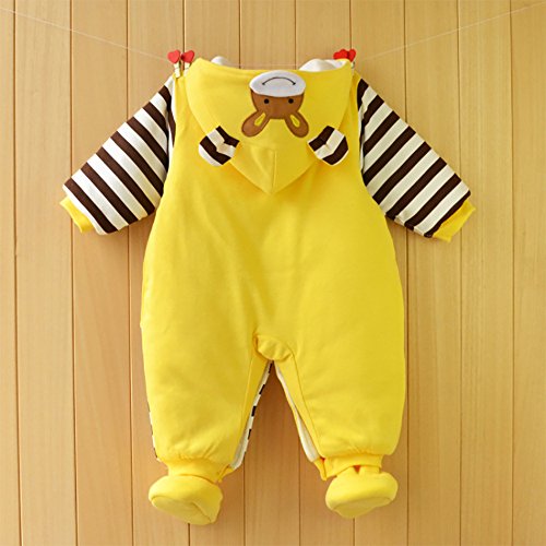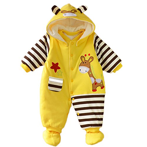 【SEBLES】ベビー服 カバーオール あったか かわいい フード なりきり アニマル キャラクター 新生児 靴下(80cm,黄色いキリン)