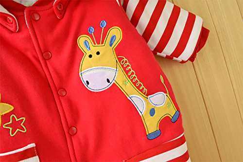 【SEBLES】ベビー服 カバーオール あったか かわいい フード なりきり アニマル キャラクター 新生児 靴下(59cm,赤いキリン)