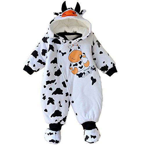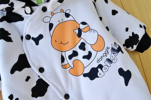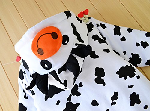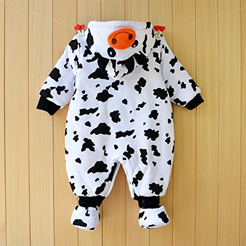 【SEBLES】ベビー服 カバーオール あったか かわいい フード なりきり アニマル キャラクター 新生児 靴下(66cm,白いウシ)