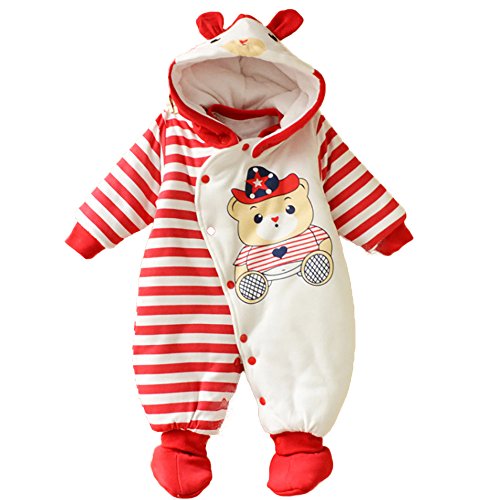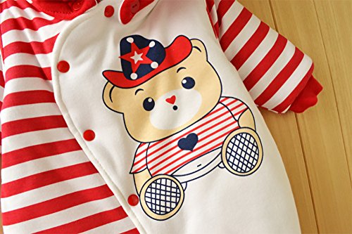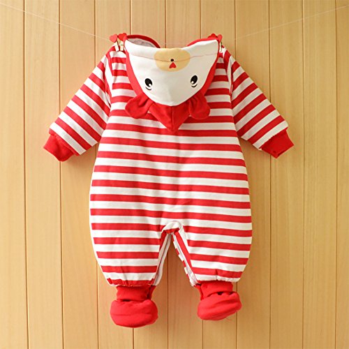 【SEBLES】ベビー服 カバーオール あったか かわいい フード なりきり アニマル キャラクター 新生児 靴下(66cm,赤いストライプベア)