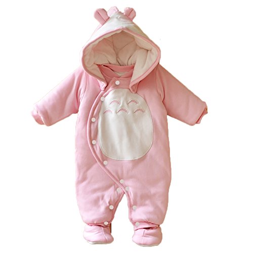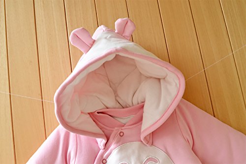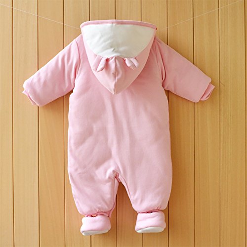 【SEBLES】ベビー服 カバーオール あったか かわいい フード なりきり アニマル キャラクター 新生児 靴下(73cm,ピンクのチンチラ)