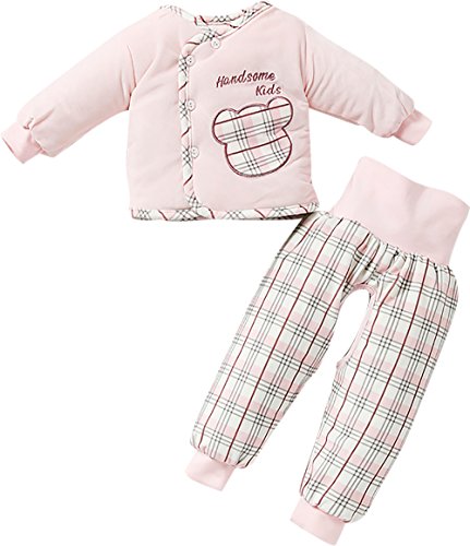 【SEBLES】ベビー服 パステルカラー あったか コットン トップス パンツ セット 新生児(ピンク,66cm)