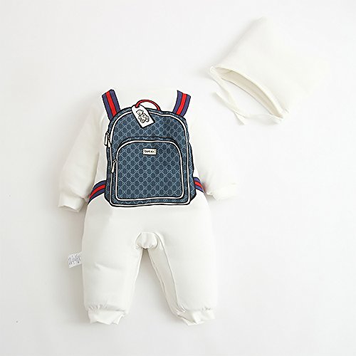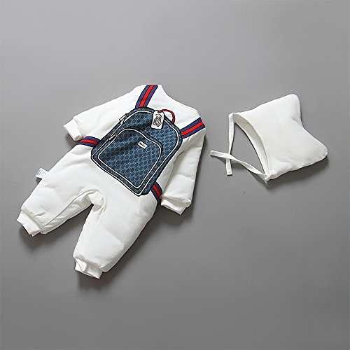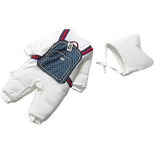 【SEBLES】ベビー服 カバーオール 帽子 セット 長袖 長ズボンアニマル キャラクター 新生児 ユニセックス スーツ 冬(ホワイト-バッグ,73cm)