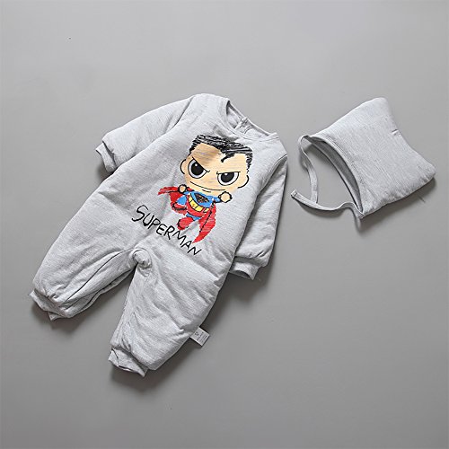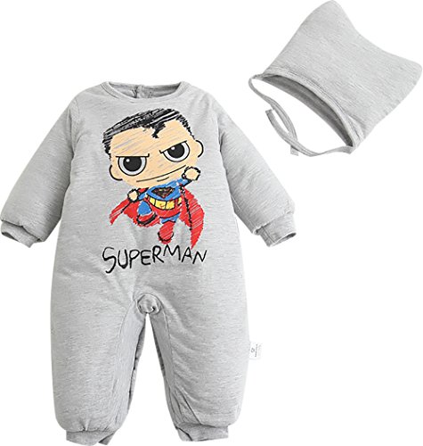 【SEBLES】ベビー服 カバーオール 帽子 セット 長袖 長ズボンアニマル キャラクター 新生児 ユニセックス スーツ 冬(グレー-スーパーマン,80cm)