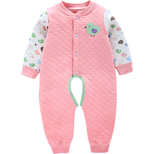 【SEBLES】ベビー服 キルティング 前開き プリント 可愛い ユニセックス キャラクター カバーオール 冬服(ピンク-とり,90cm)