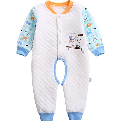 【SEBLES】ベビー服 キルティング 前開き プリント 可愛い ユニセックス キャラクター カバーオール 冬服(ブルー-くま,59cm)