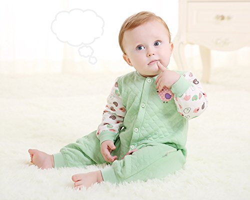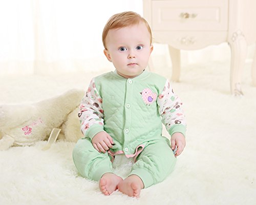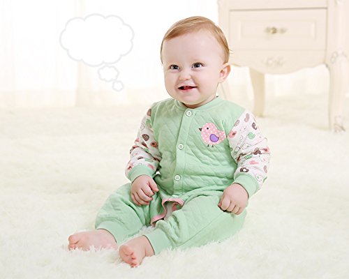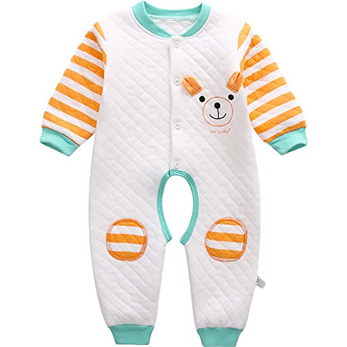【SEBLES】ベビー服 キルティング 前開き プリント 可愛い ユニセックス キャラクター カバーオール 冬服(オレンジストライプ-くま,73cm)