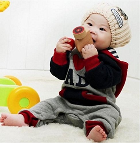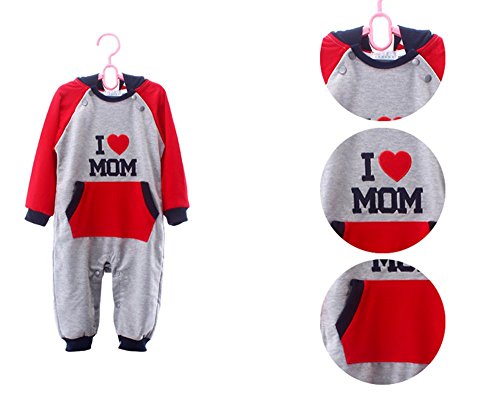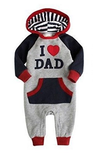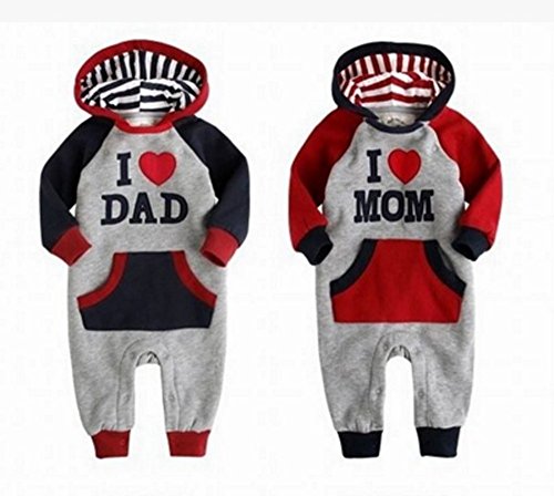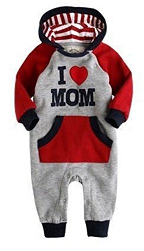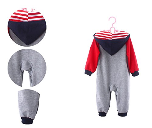 【SEBLES】 ベビー 新生児 ロンパース カバーオール パーカー フード付き (90, グレーxレッド)