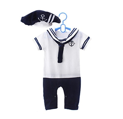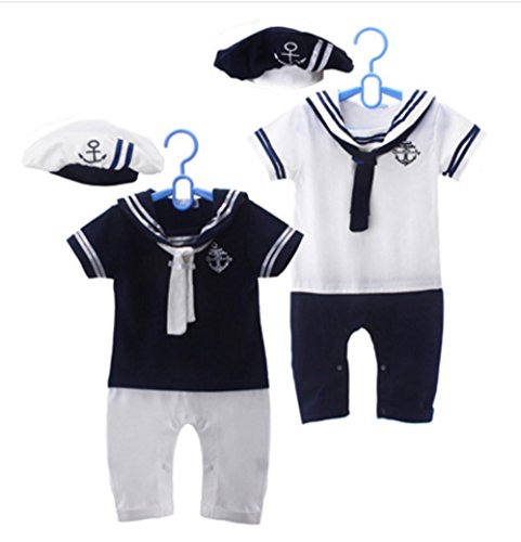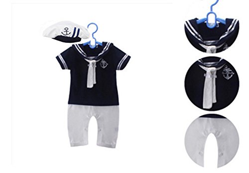 【SEBLES】 ベビー 新生児 ロンパース カバーオール マリーン セーラー カラー (90, ネイビー)