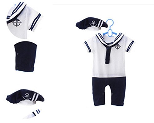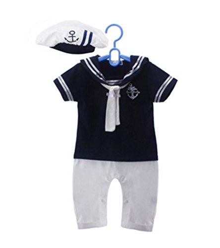 【SEBLES】 ベビー 新生児 ロンパース カバーオール マリーン セーラー カラー (100, ネイビー)
