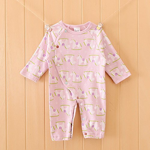 - 木馬のプリントとパステルカラーがキュートな、カバーオールです。