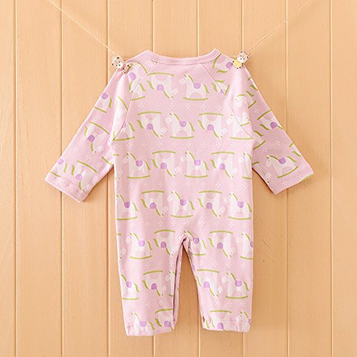 木馬のプリントが可愛い春秋に大活躍のカバーオールです。