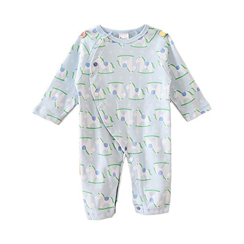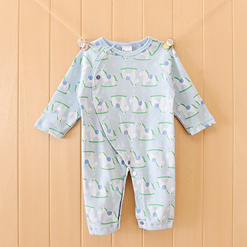 - 木馬のプリントとパステルカラーがキュートな、カバーオールです。