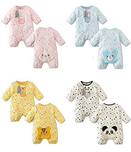 【SEBLES】ベビー服 カバーオール 前開き 新生児 3ヶ月 6ヶ月 12ヶ月 長袖 長ズボン アニマル プリント マスコット 男の子 女の子 春 秋 コットン(タイプA,66cm)