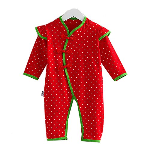 【SEBLES】ベビー 赤ちゃん カバーオール チャイナ服 チャイニーズ デザイン 長袖 長ズボン プリント ユニセックス 可愛い 前開き 春秋 春 秋 0歳 1歳 パジャマ(レッド,59cm)