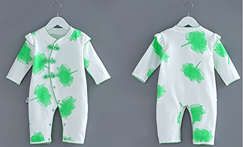 【SEBLES】ベビー 赤ちゃん カバーオール チャイナ服 チャイニーズ デザイン 長袖 長ズボン プリント ユニセックス 可愛い 前開き 春秋 春 秋 0歳 1歳 パジャマ(ホワイトグリーン,73cm)