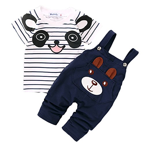 【SEBLES】ベビー 赤ちゃん オーバーオール Tシャツ セット ツーピース カジュアル 熊 クマ くま パンダ ぱんだ アニマル ユニセックス 春 夏 秋(ネイビー,90cm)