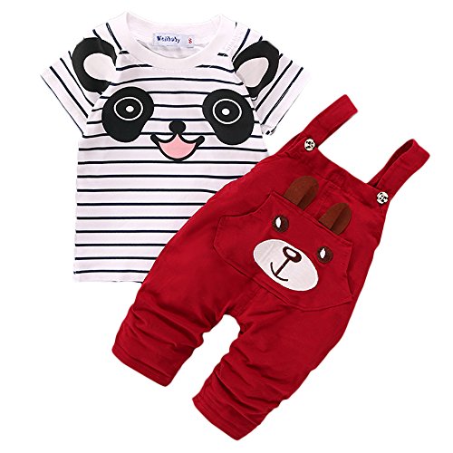 【SEBLES】ベビー 赤ちゃん オーバーオール Tシャツ セット ツーピース カジュアル 熊 クマ くま パンダ ぱんだ アニマル ユニセックス 春 夏 秋(ディープレッド,100cm)