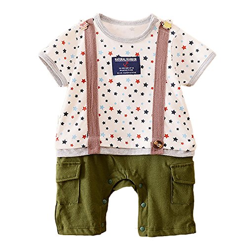 【SEBLES】ベビー 赤ちゃん 男の子 カバーオール ロンパース 半袖 ラウンドネック セットアップ プリント コットン 綿 ボトムス 春 夏(タイプA,70cm)