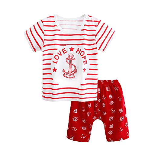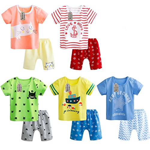 初夏~夏向けの赤ちゃんのTシャツ+短パンのセットです。