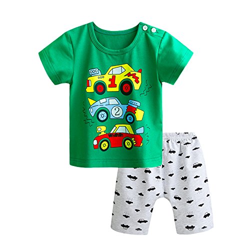 初夏~夏向けの赤ちゃんのTシャツ+短パンのセットです。