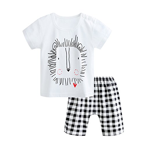 【SEBLES】ベビー 赤ちゃん 半袖 ラウンドネック シャツ Tシャツ 短パン 半ズボン パンツ 無地 プリント 肩ボタン スター 上下 セット 初夏 夏 薄手 0歳 1歳 2歳(タイプT,73cm)