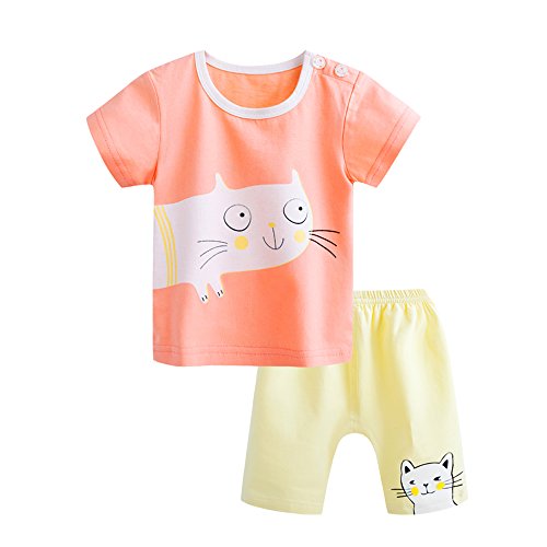 初夏~夏向けの赤ちゃんのTシャツ+短パンのセットです。
