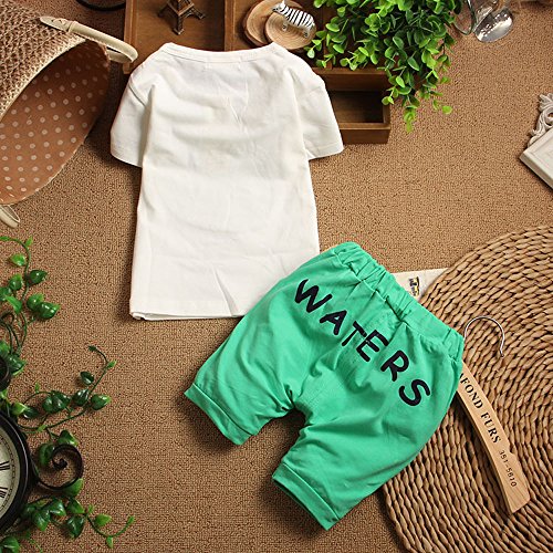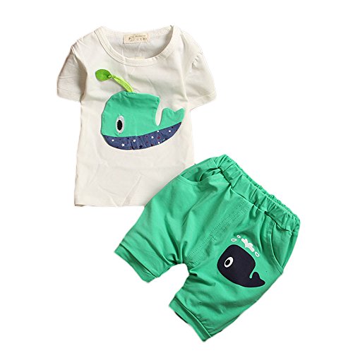 【SEBLES】ベビー 赤ちゃん 半袖 ラウンドネック シャツ Tシャツ 半パン 半ズボン パンツ コットン くじら プリント 肩ボタン スター 上下 セット 初夏 夏 薄手 0歳 1歳 2歳 (グリーン,M)