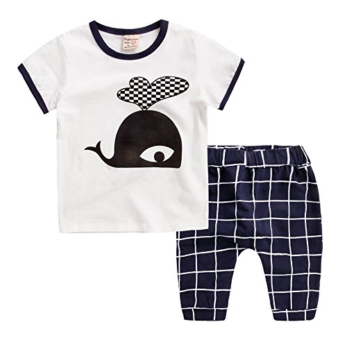 - 可愛いプリントTシャツと柄物パンツがセットです。