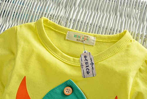 【SEBLES】ベビー 赤ちゃん 男の子 女の子 ユニセックス リキッドカラー 半袖 ラウンドネック プリント キャラクター 可愛い Tシャツ ズボン ボトムス セット カジュアル コットン 綿(イエロー,80cm)